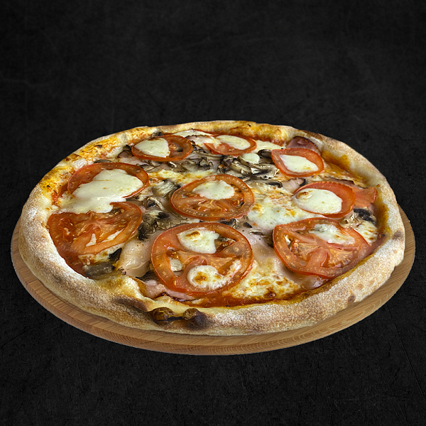 Гриби, бекон, сулугуні, моцарела, помідор, соус неаполітанський